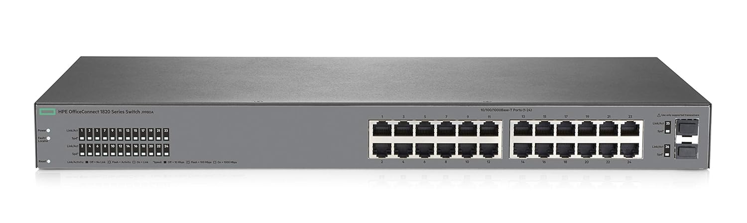 Amazon Com Hpe Officeconnect 1820 24 Port Gig Smart Switch 24 X Ge 10 100 1000 2x Sfp Fanless J9980a Aba Computers Accessories