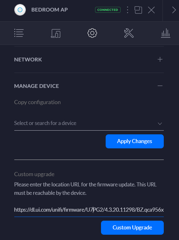 Click the Copy URL button. Updated the firmware on 9 Unifi APs.
