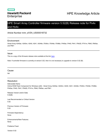 Hpe Smart Array Controller Firmware Version 5 52 B Manualzz