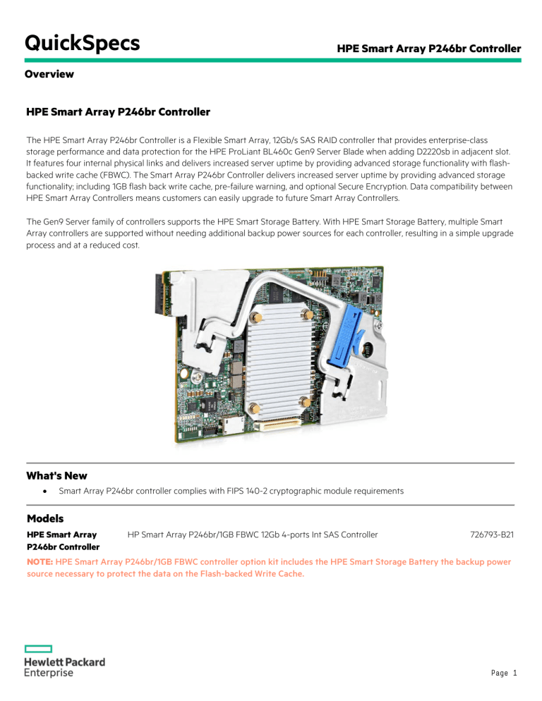 The HPE Smart Array P440ar Controller is a Flexible Smart Array 12 Gbs SAS RAID controller that provides enterprise-class storage performance increased internal scalability with SAS Expander Card and data protection for HPE ProLiant Gen9 rack and tower servers. It seens have a firmware version 688-0 688 what does 0 mean. QuickSpecs HPE Smart Array P440ar Controller Standard Features Page 2 Key Features Storage interface SASSATA o 8 physical links across 2 x4 internal port s o 12Gbs SAS 6Gbs SATA technology o Mix-and-match SAS and SATA drives to the same controller o Support for SAS tape drives SAS tape autoloaders and SAS tape libra ries 2 GiBytes Flash-Backed Write Cache FBWC.